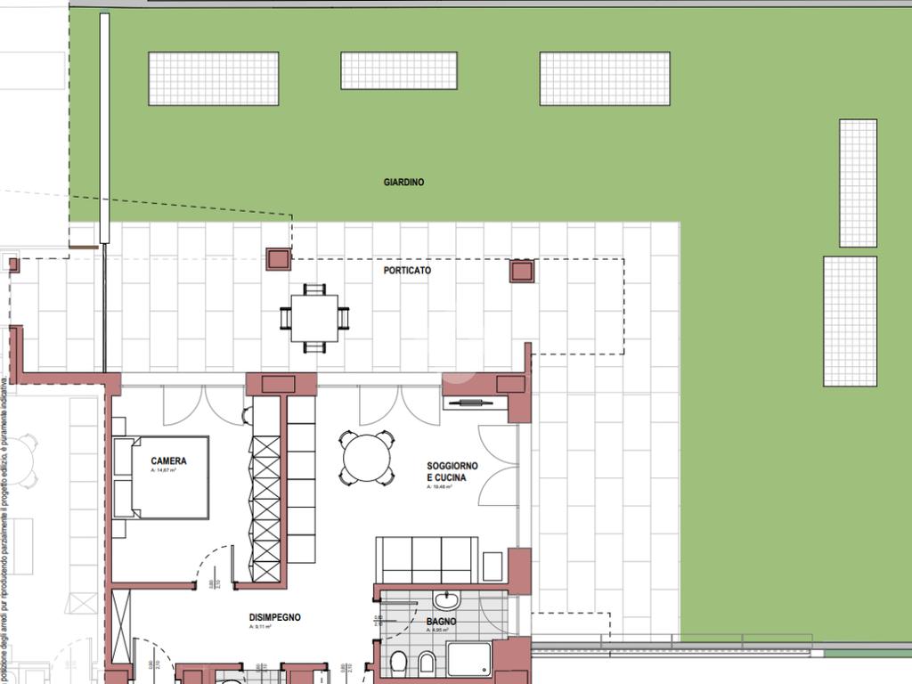 Punto di forza della proprietà è l’ampio giardino privato, uno spazio verde esclusivo ideale per momenti di relax, per famiglie o per chi desidera vivere l’esterno in totale privacy. Il porticato rappresenta una naturale estensione della zona giorno, perfetto per pranzi all’aperto o per creare un’elegante area living esterna.