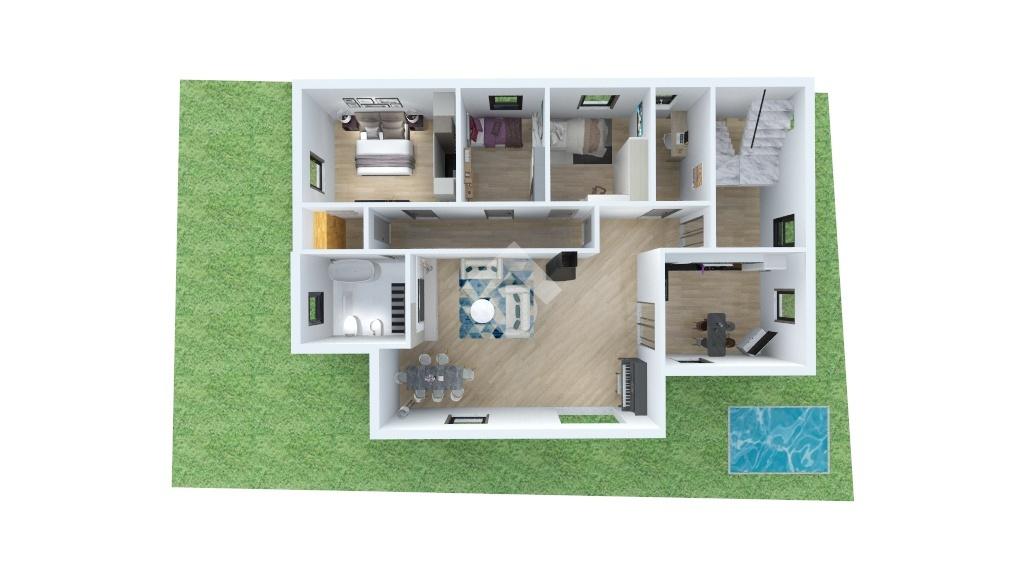 Al piano terra si trova una camera da letto matrimoniale e due camere da letto singole, un ripostiglio, due bagni finestrati, cucina e soggiorno separati che hanno accesso diretto al patio.